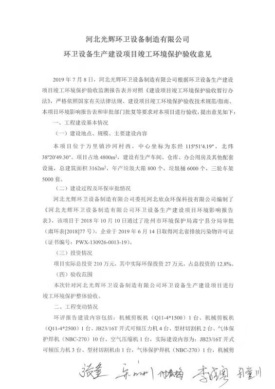 YS河北光輝環衛設備制造有限公司驗收報告.doc